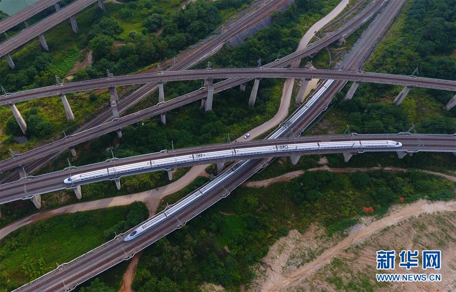 動車行駛在廣西南寧市屯里特大橋上(7月1日無人機拍攝)。 廣西壯族自治區(qū)成立60年來,鐵路建設(shè)發(fā)生翻天覆地的變化。來自中國鐵路南寧局集團有限公司的數(shù)據(jù)顯示,1958年廣西鐵路總里程為1346.3公里,如今廣西鐵路總里程達(dá)5191公里。廣西與周邊相鄰省份間實現(xiàn)動車“公交化”開行。此外,北部灣港—重慶班列、東盟海產(chǎn)品冷鏈班列、“百色一號”果蔬專列等的開通和運營,強化了鐵路供給的針對性和有效性。鐵路成為助推廣西經(jīng)濟社會快速發(fā)展的“大動脈”。 新華社記者黃孝邦攝