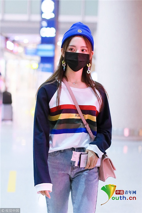 2018年9月25日,北京,“錦鯉少女”楊超越現(xiàn)身機(jī)場,她身穿“彩虹裝”青春無敵,戴著糖果色耳環(huán),細(xì)節(jié)處可愛吸睛。