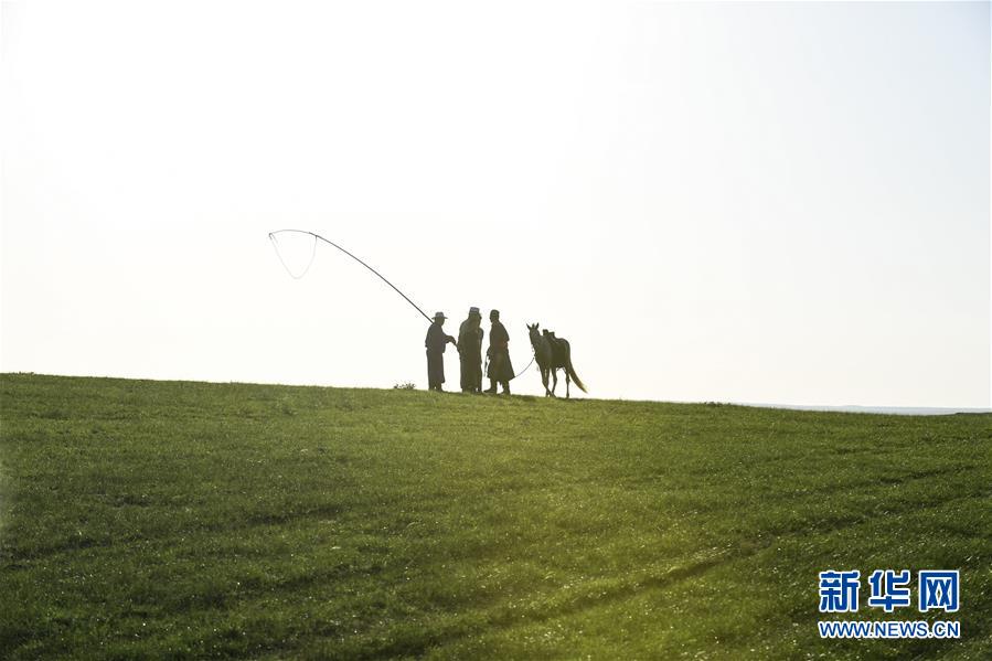 西烏珠穆沁旗草原上的牧民(7月21日攝)。盛夏時節(jié),內(nèi)蒙古錫林郭勒草原一碧千里,遙接天際。藍天白云之下,牛羊悠閑自在,馬群奔馳其中,風光旖旎。 新華社記者 劉磊 攝