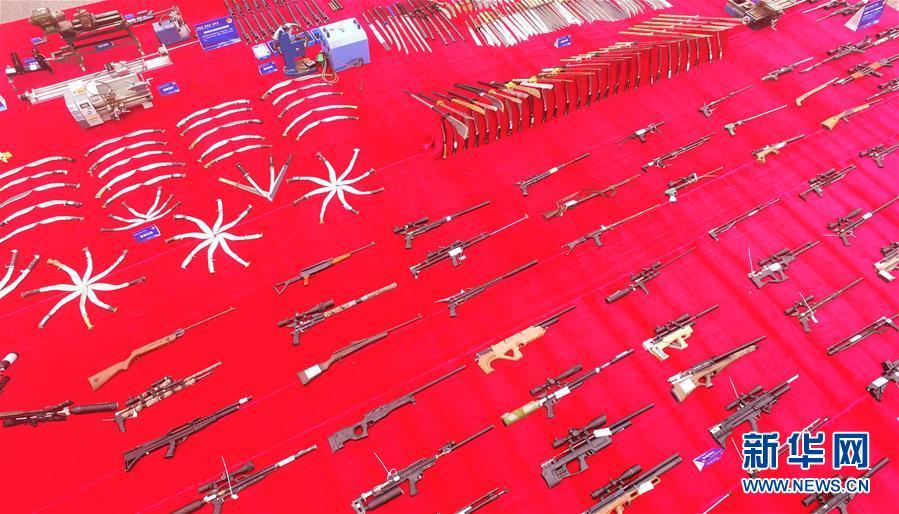 9月20日,非法槍支等物品在全國公安機(jī)關(guān)集中統(tǒng)一銷毀非法槍爆物品活動(dòng)重慶現(xiàn)場展示(無人機(jī)拍攝)。 新華社記者 王全超 攝