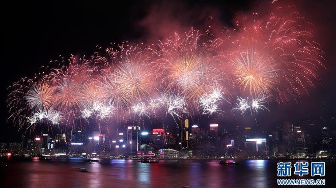 香港舉行國(guó)慶煙花匯演
