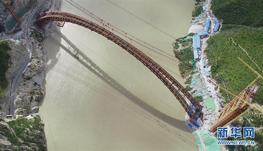 9月28日拍攝的川藏鐵路拉林段重點(diǎn)標(biāo)志性工程藏木特大橋。 當(dāng)日,隨著最后一節(jié)鋼管拱的對位和鎖定完畢,川藏鐵路拉林段藏木特大橋成功合龍,標(biāo)志著大橋主體結(jié)構(gòu)施工取得了關(guān)鍵性勝利。藏木特大橋由中國中鐵廣州局集團(tuán)承建,拱高112米,橋橫跨雅魯藏布江峽谷,水深66米。 新華社記者普布扎西攝