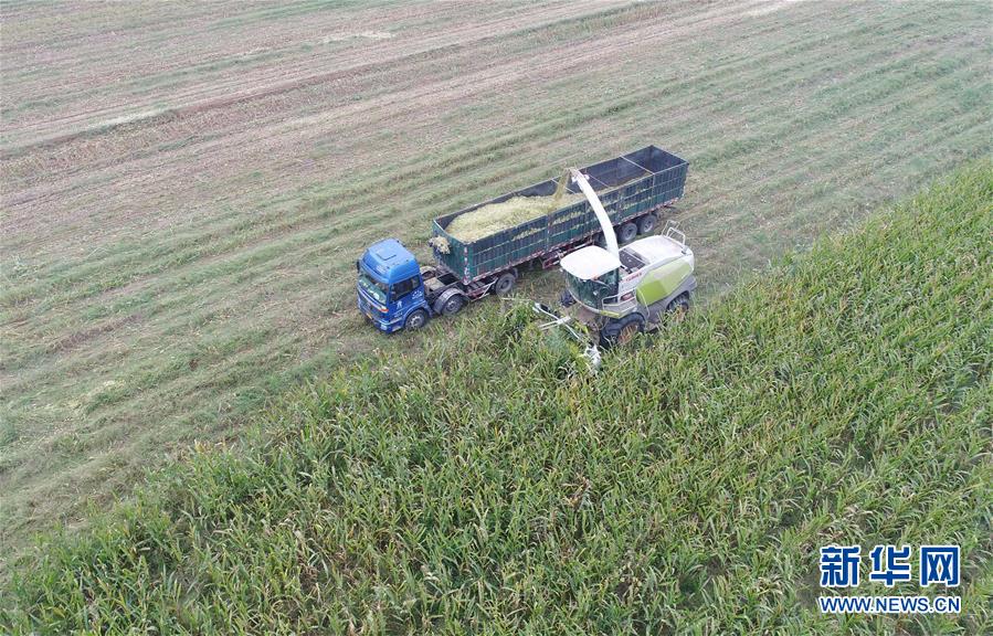 10月8日,河北故城縣里老鄉(xiāng)林場村農(nóng)民在收獲青貯玉米(無人機拍攝)。 近年來,河北省故城縣結(jié)合市場需求,通過“龍頭企業(yè)+基地+農(nóng)戶”的經(jīng)營模式,鼓勵引導農(nóng)民發(fā)展訂單式青貯玉米種植,不僅增加了種植戶收入,而且為養(yǎng)殖企業(yè)提供了優(yōu)質(zhì)飼料。目前,故城縣已發(fā)展青貯玉米種植面積6萬余畝。 新華社記者 朱旭東 攝
