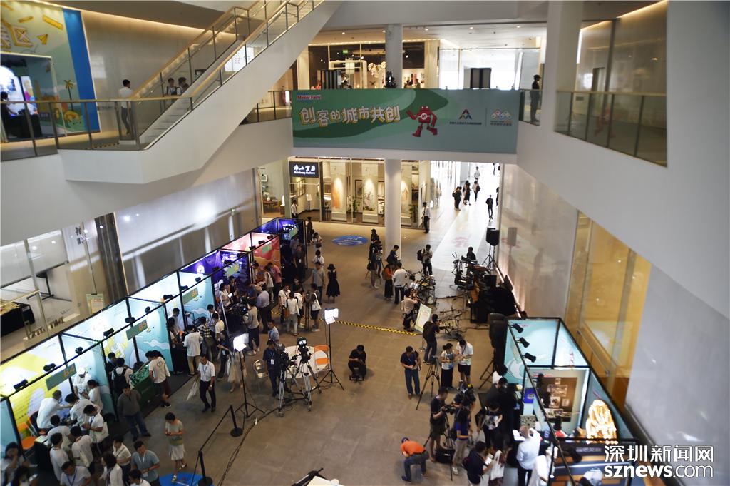 深圳雙創(chuàng)周主會(huì)場1樓內(nèi)部,創(chuàng)意站位前參觀人數(shù)眾多,非常熱鬧