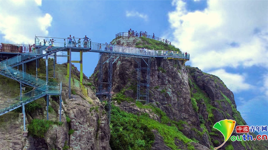 經(jīng)過一年的建設(shè),位于素有“嶺南第一險峰”與“南粵小華山”之稱的廣東清遠(yuǎn)連山金子山,有一條玻璃天梯建成。下個月10日,玻璃天梯將正式對游客開放。