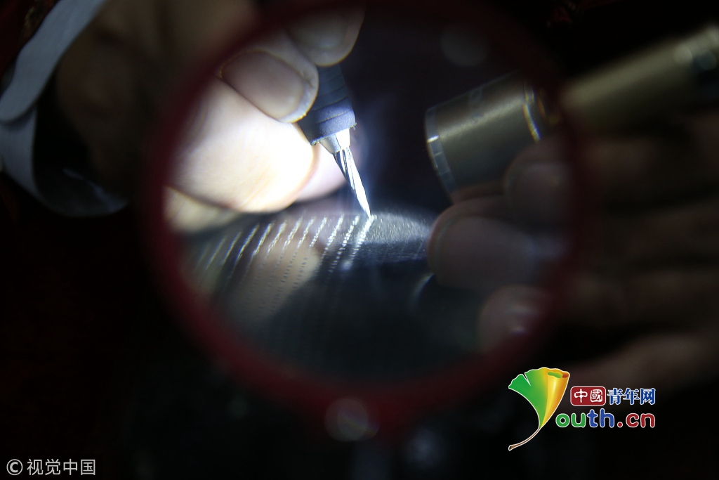 濟(jì)南一大爺黑陶鼎上刻字 1個(gè)字不到1毫米需用放大鏡看