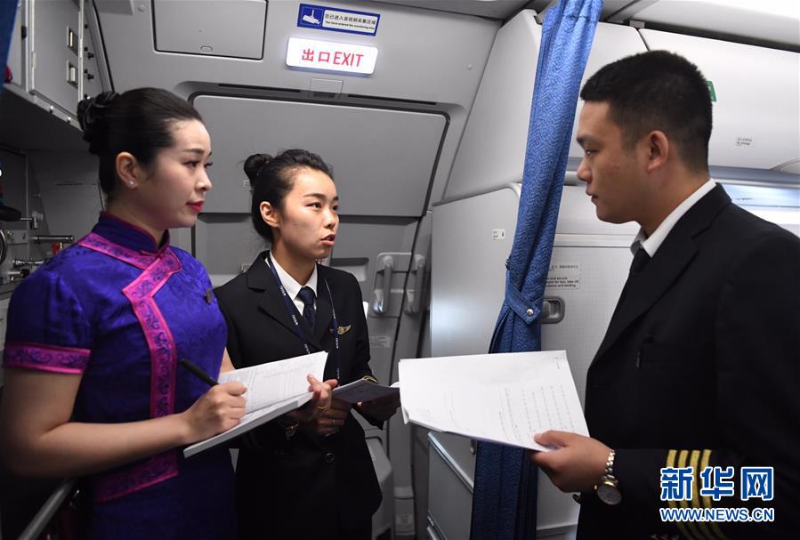 10月16日,湯春燕登機(jī),準(zhǔn)備開始工作。 新華社記者王全超攝