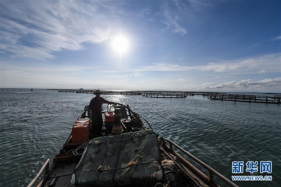 8月18日,南麂島海域的“海上牧場(chǎng)”養(yǎng)殖區(qū)內(nèi),漁民駕駛漁船進(jìn)行養(yǎng)殖作業(yè)。進(jìn)入8月,浙江省溫州市平陽(yáng)縣南麂鎮(zhèn)海域上大片的大黃魚、貽貝等特色海產(chǎn)品養(yǎng)殖區(qū)域迎來(lái)豐收季節(jié),養(yǎng)殖戶們駕駛漁船在養(yǎng)殖區(qū)海域進(jìn)行打撈收獲,在碧海藍(lán)天下構(gòu)成了一幅“海上牧場(chǎng)”的美麗豐收景象。近年來(lái),南麂鎮(zhèn)政府引導(dǎo)漁民養(yǎng)殖戶充分發(fā)揮“靠海吃?!钡馁Y源優(yōu)勢(shì),大力發(fā)展海洋養(yǎng)殖經(jīng)濟(jì)和海島旅游經(jīng)濟(jì),實(shí)現(xiàn)了南麂由“生態(tài)美”向“產(chǎn)業(yè)美”,“產(chǎn)業(yè)美”向“經(jīng)濟(jì)美”的轉(zhuǎn)變。同時(shí)該鎮(zhèn)堅(jiān)持以大黃魚、貽貝等為特色產(chǎn)業(yè)支撐,精準(zhǔn)發(fā)展高效海洋養(yǎng)殖業(yè),重點(diǎn)培養(yǎng)一批新型職業(yè)漁民,依靠專業(yè)技術(shù)支持,實(shí)現(xiàn)深海仿生養(yǎng)殖,讓好生態(tài)造就好品質(zhì),重點(diǎn)打造南麂養(yǎng)殖品牌,組建營(yíng)銷網(wǎng)絡(luò),拓展特色海產(chǎn)品市場(chǎng)。新華社記者 徐昱攝