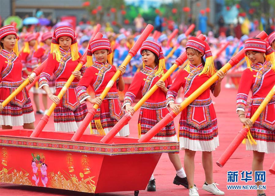 10月20日,各族同胞在廣西大化瑤族自治縣江濱文化廣場(chǎng)表演節(jié)目,慶??h慶?!⌒氯A社記者黃孝邦攝