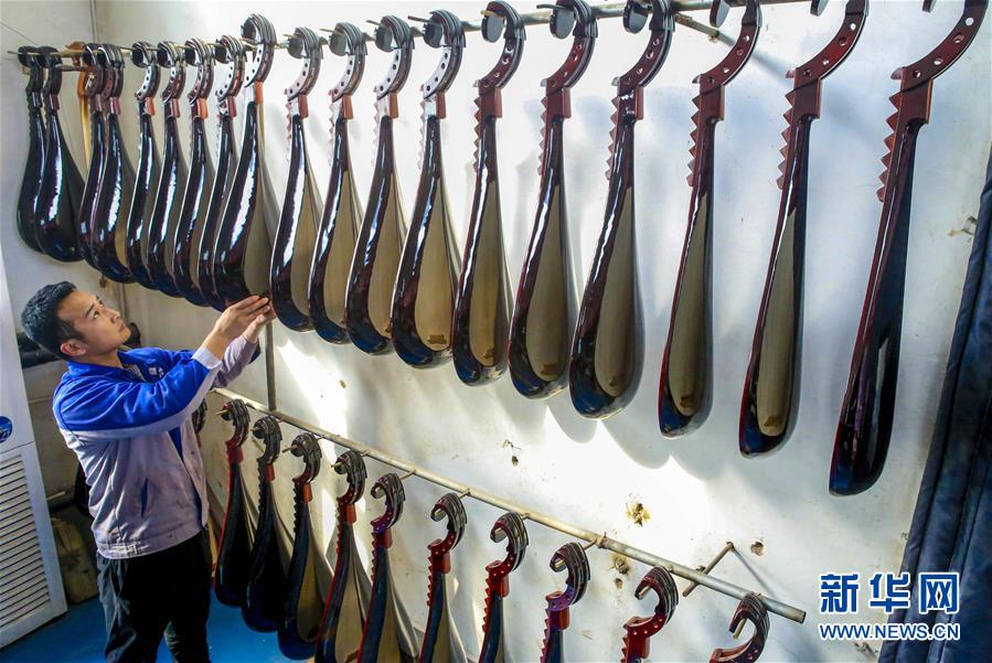 10月20日,在河北省饒陽縣一家民族樂器廠,工人在加工產(chǎn)品。