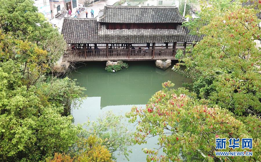 有著數(shù)百年歷史的廣西富川瑤族自治縣朝東鎮(zhèn)東水村風雨橋(10月19日無人機拍攝)?!⌒氯A社記者 周華 攝