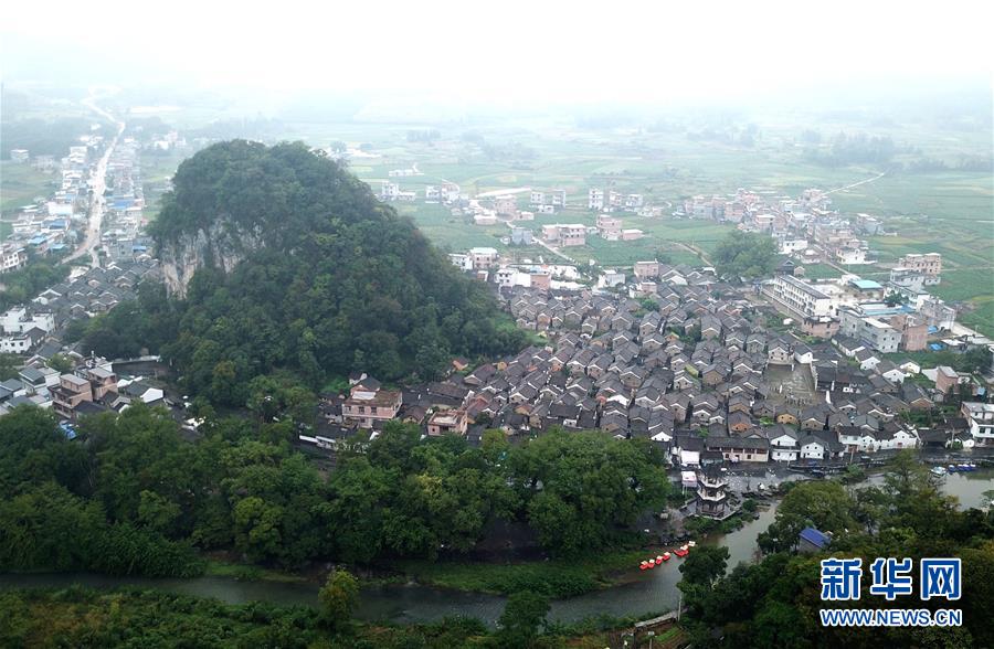 廣西富川瑤族自治縣朝東鎮(zhèn)秀水村連片民居(10月19日無(wú)人機(jī)拍攝)。 新華社記者 周華 攝