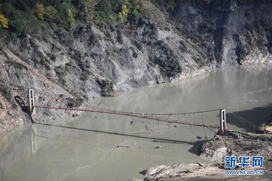 10月20日,西藏雅魯藏布江米林縣堰塞湖自然過流后,通往加拉村的大橋完全浮出江面。 10月19日13時(shí)30分,西藏雅魯藏布江米林縣堰塞湖開始自然過流。記者從應(yīng)急管理部牽頭的聯(lián)合工作組獲悉,截至20日7時(shí),雅魯藏布江堰塞湖壩前水位已下降56米,估算留存水量1.6億立方米,堰塞湖洪水威脅得到緩解,防洪安全風(fēng)險(xiǎn)大大減輕,并將繼續(xù)降低。 10月20日,記者乘坐直升機(jī)從空中拍攝了雅魯藏布江堰塞湖自然過流的畫面。 新華社記者普布扎西攝