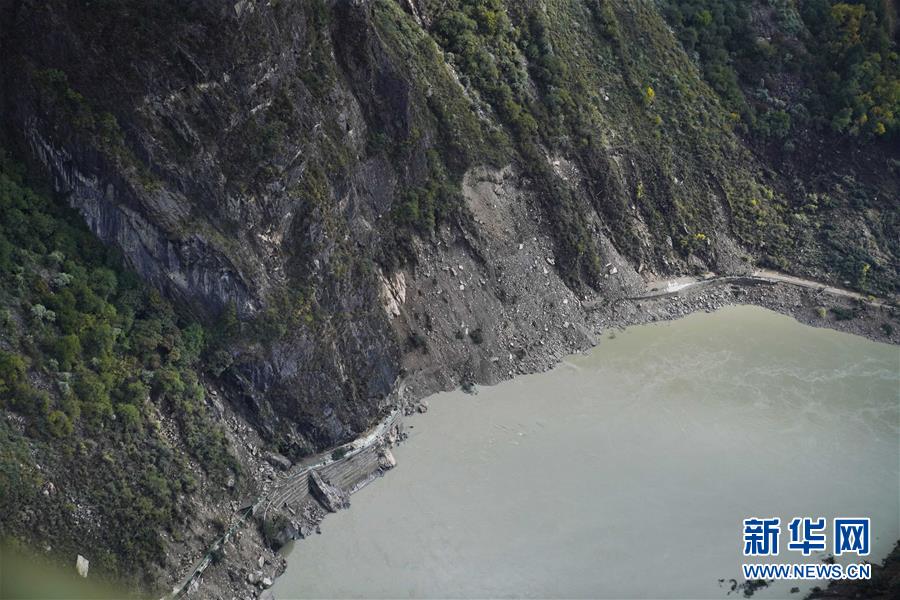 10月20日,西藏雅魯藏布江米林縣堰塞湖自然過流后,露出損毀的道路。 10月19日13時30分,西藏雅魯藏布江米林縣堰塞湖開始自然過流。記者從應(yīng)急管理部牽頭的聯(lián)合工作組獲悉,截至20日7時,雅魯藏布江堰塞湖壩前水位已下降56米,估算留存水量1.6億立方米,堰塞湖洪水威脅得到緩解,防洪安全風(fēng)險大大減輕,并將繼續(xù)降低。 10月20日,記者乘坐直升機從空中拍攝了雅魯藏布江堰塞湖自然過流的畫面。 新華社記者普布扎西攝