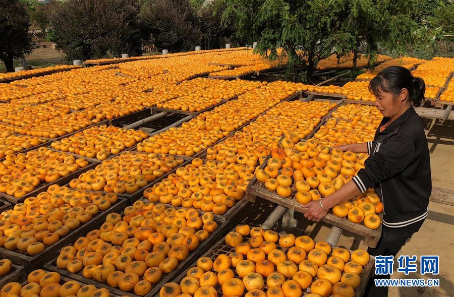 10月17日,廣西桂林市平樂(lè)縣沙子鎮(zhèn)渡河村農(nóng)民在晾曬柿子(手機(jī)拍攝)。 金秋時(shí)節(jié),農(nóng)民們忙著收獲成熟的農(nóng)作物,喜迎豐收。 新華社記者 黃孝邦 攝