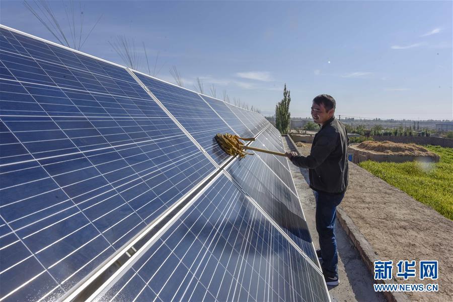 在新疆哈密市伊州區(qū)回城鄉(xiāng)鐵木爾提村,村民潘林琪打掃自家房頂上的太陽(yáng)能發(fā)電板(2018年9月21日攝)。今年以來(lái),新疆穩(wěn)步推進(jìn)新能源參與“疆電外送”、擴(kuò)大與燃煤自備電廠調(diào)峰替代交易等多種電力交易方式,著力破解“綠色電力”上網(wǎng)難題,新能源發(fā)電量同比增加近13個(gè)百分點(diǎn),而棄電量和棄電比實(shí)現(xiàn)“雙降”,綠色發(fā)展理念進(jìn)一步落實(shí)。新疆是我國(guó)重要的能源供應(yīng)和儲(chǔ)備基地,風(fēng)能、太陽(yáng)能儲(chǔ)量豐富。近年來(lái),新疆新能源裝機(jī)總量突破2700萬(wàn)千瓦,規(guī)模和占比均居全國(guó)前列。新華社記者 趙戈 攝