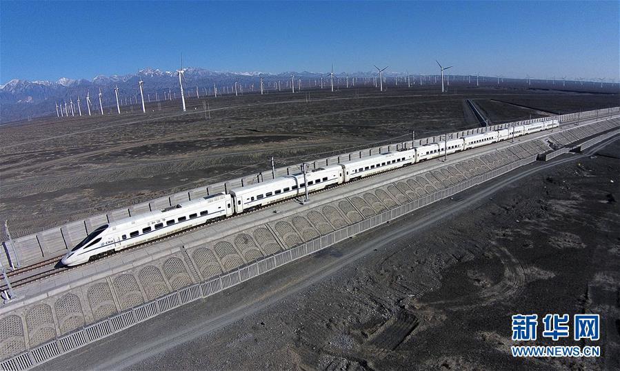 一輛和諧號(hào)動(dòng)車穿行在新疆烏魯木齊達(dá)坂城風(fēng)力發(fā)電場(chǎng)的“風(fēng)車森林”里(2014年11月16日無(wú)人機(jī)拍攝)。今年以來(lái),新疆穩(wěn)步推進(jìn)新能源參與“疆電外送”、擴(kuò)大與燃煤自備電廠調(diào)峰替代交易等多種電力交易方式,著力破解“綠色電力”上網(wǎng)難題,新能源發(fā)電量同比增加近13個(gè)百分點(diǎn),而棄電量和棄電比實(shí)現(xiàn)“雙降”,綠色發(fā)展理念進(jìn)一步落實(shí)。 新疆是我國(guó)重要的能源供應(yīng)和儲(chǔ)備基地,風(fēng)能、太陽(yáng)能儲(chǔ)量豐富。近年來(lái),新疆新能源裝機(jī)總量突破2700萬(wàn)千瓦,規(guī)模和占比均居全國(guó)前列。新華社記者 江文耀 攝