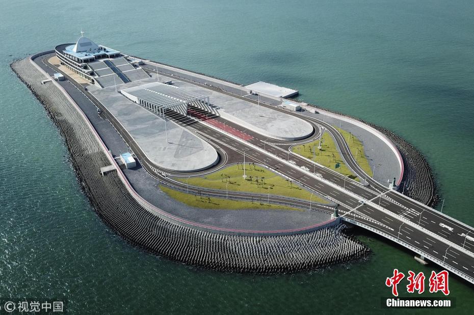 圖為2018年9月18日,強臺風“山竹”吹襲香港過后,港珠澳大橋安然無恙。圖為位于香港海域的港珠澳大橋東人工島。李志華 攝 圖片來源:視覺中國
