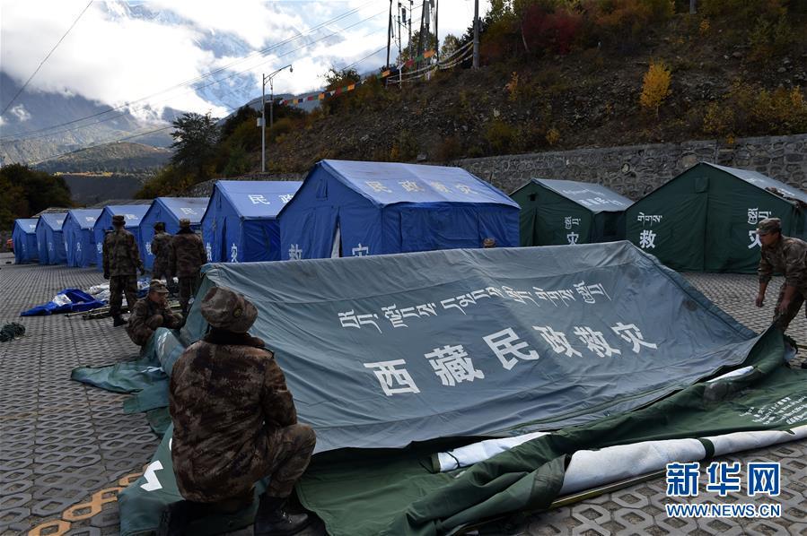 10月19日,救援人員在米林縣派鎮(zhèn)尼定村搭建安置點(diǎn)。 記者從西藏自治區(qū)林芝加拉村雅魯藏布江堰塞湖災(zāi)情應(yīng)急搶險(xiǎn)工作第二場(chǎng)新聞發(fā)布會(huì)上獲悉,19日13時(shí)30分,雅魯藏布江米林縣堰塞體上游水位超過(guò)堰塞體,開始自然過(guò)流,上游水位正在緩慢下降。目前,各項(xiàng)搶險(xiǎn)救援工作正在有序開展。 新華社記者 覺果 攝