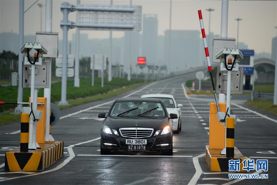 10月24日,首輛私家車(chē)行駛在澳門(mén)口岸入境車(chē)道上。當(dāng)日,港珠澳大橋正式通車(chē)。 新華社記者張金加攝