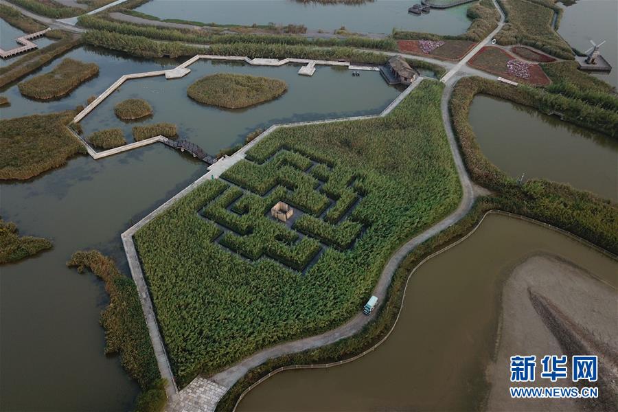 10月24日無人機拍攝的杭州灣國家濕地公園。 時值深秋,位于浙江寧波的杭州灣國家濕地公園在落日余暉下呈現(xiàn)出一幅美麗的畫卷。 新華社記者 黃宗治 攝