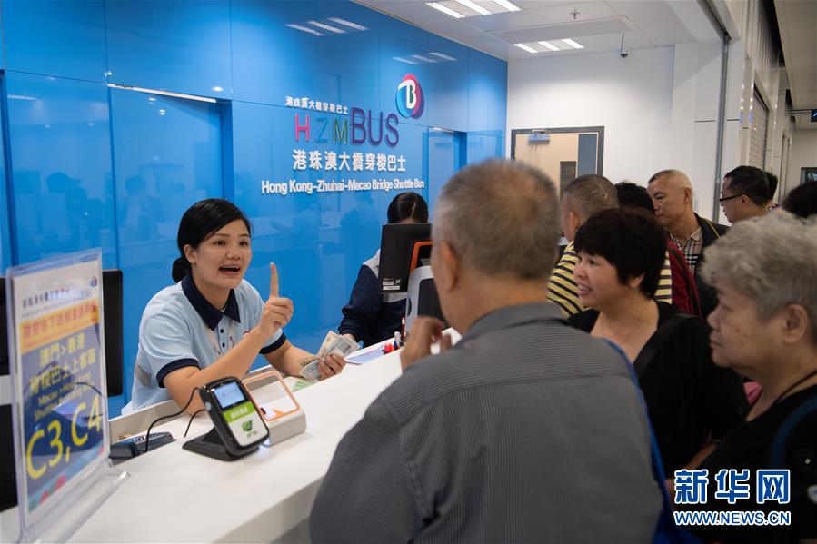 10月24日,市民在澳門離境大堂穿梭巴士售票處購買車票。 當(dāng)日,港珠澳大橋正式通車。