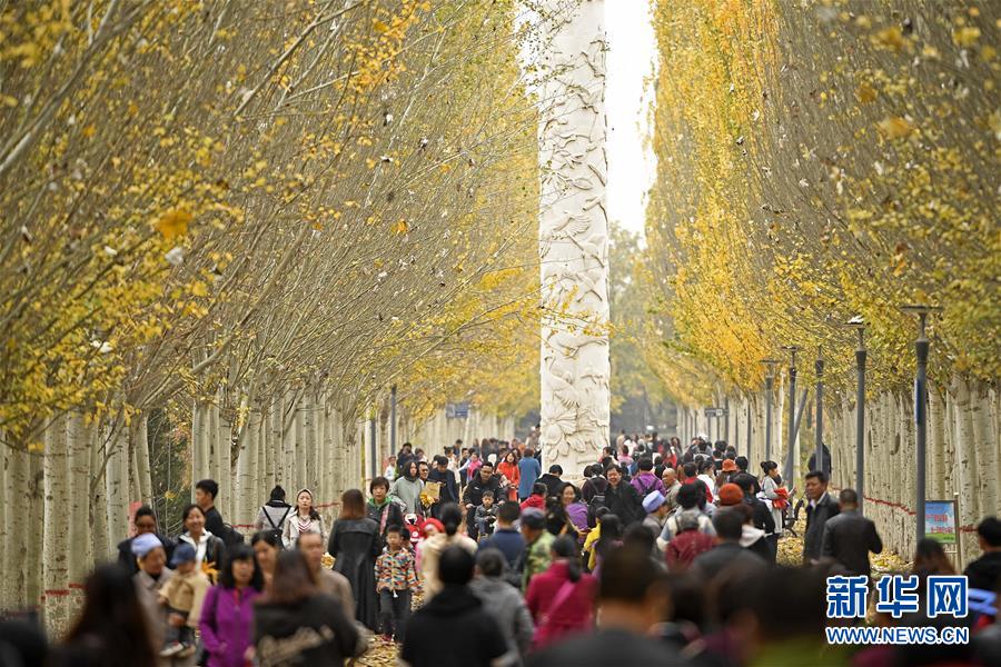 市民在寧夏銀川市鳳凰公園欣賞秋景(10月20日攝)。