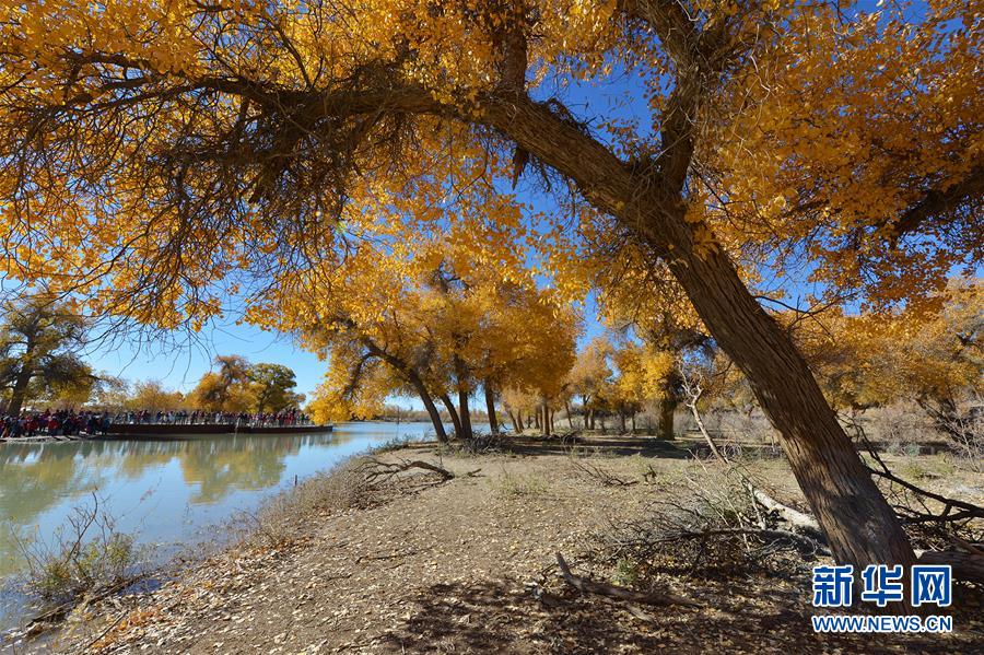 這是在內(nèi)蒙古自治區(qū)額濟納旗拍攝的胡楊林(10月10日攝)。 金秋時節(jié),內(nèi)蒙古自治區(qū)額濟納旗胡楊林如同披上金裝,成為大漠中的一抹亮色,吸引眾多中外游客前來觀賞游玩。 新華社記者鄒予攝