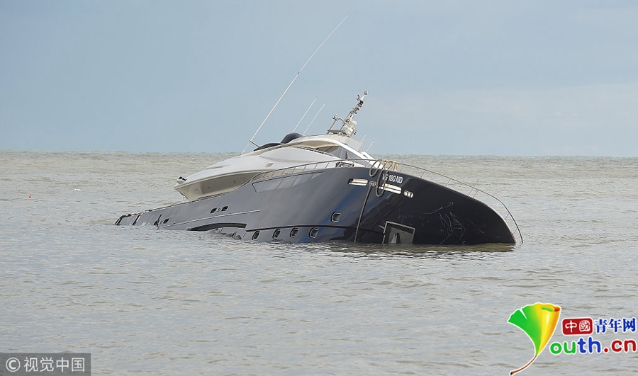 圖為一艘船只被暴風(fēng)雨襲擊后傾覆在海面。