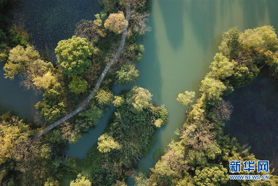 這是10月29日無人機(jī)拍攝的西溪濕地。新華社記者翁忻旸攝
