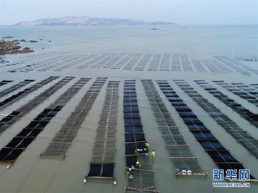 10月24日,福建莆田蔣山村村民在收獲紫菜?! ⌒氯A社記者姜克紅 攝