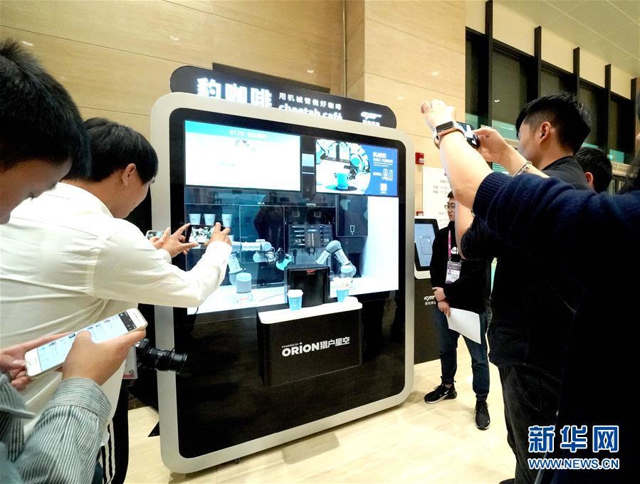 11月4日,媒體記者在首屆中國國際進口博覽會新聞中心拍攝無人咖啡亭。 新華社記者陳建力攝