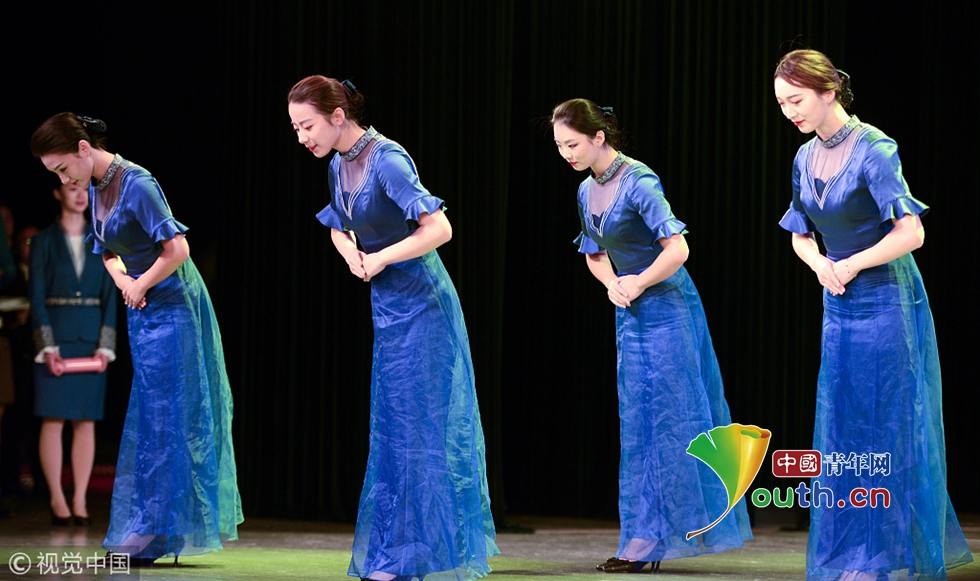 2018年10月15日,杭州,第五屆世界互聯(lián)網(wǎng)大會(huì)召開在即,來自浙江傳媒學(xué)院的禮儀志愿者們正在進(jìn)行緊張有序的集中訓(xùn)練。圖片作者:浙江日?qǐng)?bào) 馮賀/視覺中國(guó)
