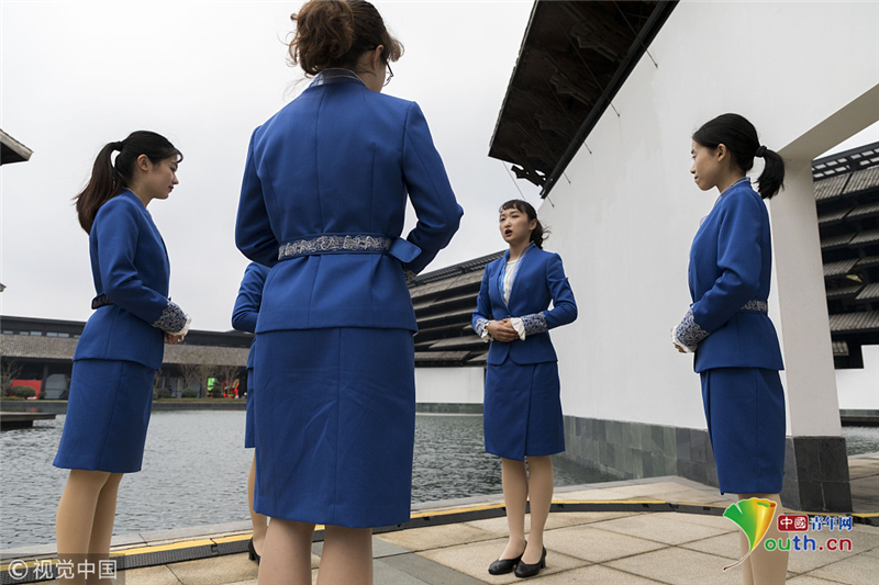 2018年11月5日,浙江嘉興,大會志愿者“小梧桐”爭分奪秒,在烏鎮(zhèn)展開緊張的實戰(zhàn)培訓(xùn)。阿凡提達/視覺中國