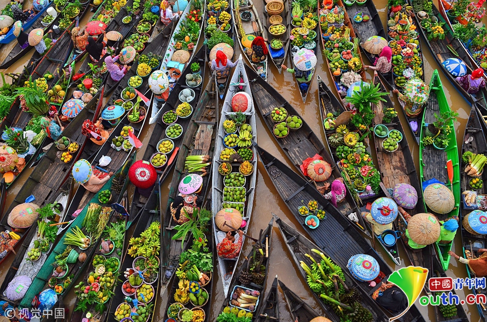 2018年11月5日訊(具體拍攝時間不詳),印度尼西亞班加爾地區(qū),專業(yè)攝影師Saipullah拍攝的洛克班坦(Lok Baintan)水上集市。 圖片來源:視覺中國