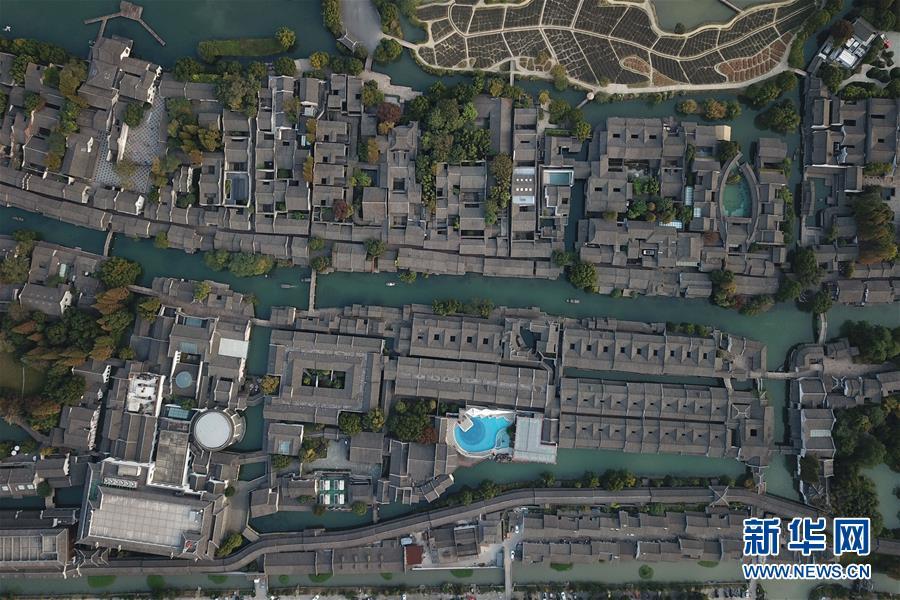這是10月31日無人機拍攝的烏鎮(zhèn)西柵景區(qū)。 新華社記者黃宗治攝
