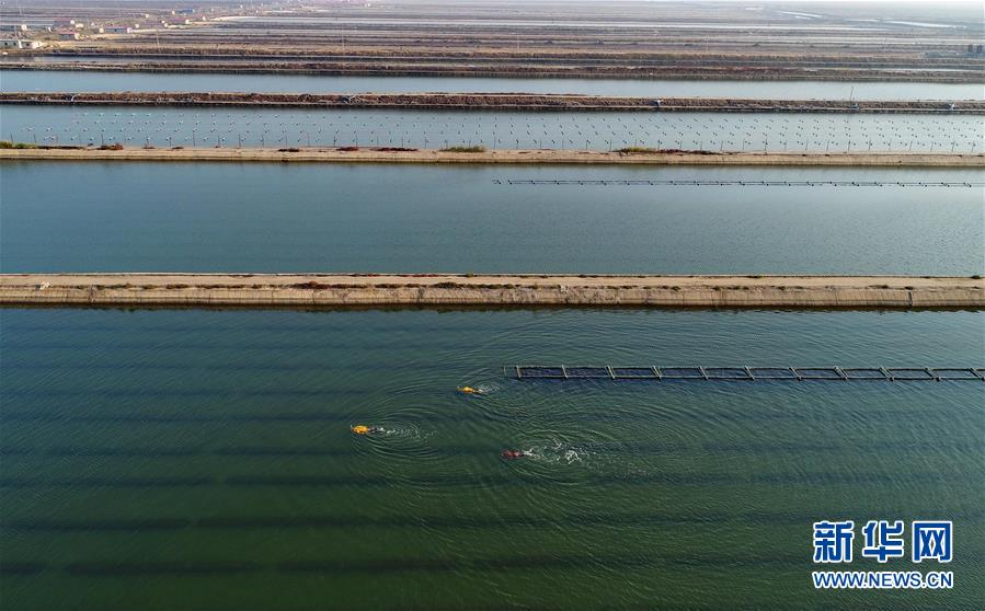 10月22日,樂亭縣姜各莊鎮(zhèn)二節(jié)村海參養(yǎng)殖基地的工人在捕撈海參(無人機(jī)拍攝)。 時(shí)下,正值渤海灣地區(qū)海參收獲時(shí)節(jié),河北省樂亭縣的海參養(yǎng)殖戶忙著捕撈海參,供應(yīng)各地市場(chǎng)。據(jù)介紹,該縣海域水質(zhì)優(yōu)良、氣候適宜,是海參養(yǎng)殖的理想場(chǎng)地,目前發(fā)展池塘造礁養(yǎng)殖海參面積6萬畝,年產(chǎn)鮮活海參6000多噸,年產(chǎn)值2億多元。 新華社記者 楊世堯 攝