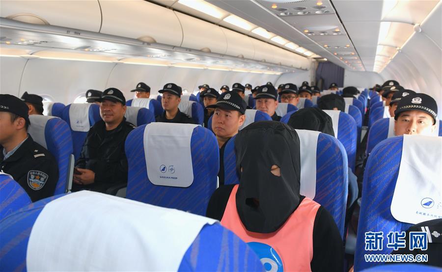 11月7日,涉及到吉林部分網(wǎng)絡(luò)詐騙案件的14名犯罪嫌疑人繼續(xù)乘坐包機(jī)被押解回吉林接受處理。新華社記者毛思倩攝