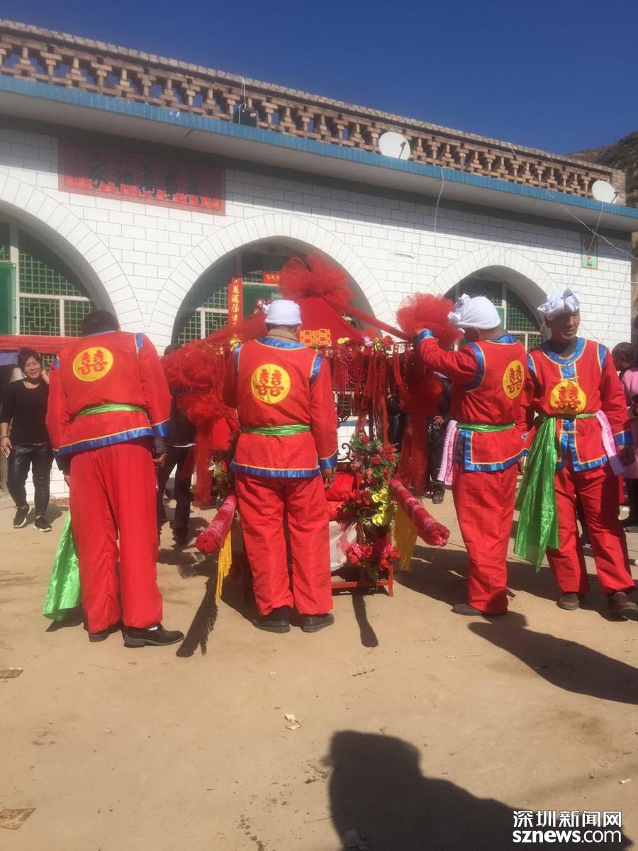 出了村口,新娘就下轎子改乘汽車走了。轎夫、轎子和毛驢也有專門的車載走。