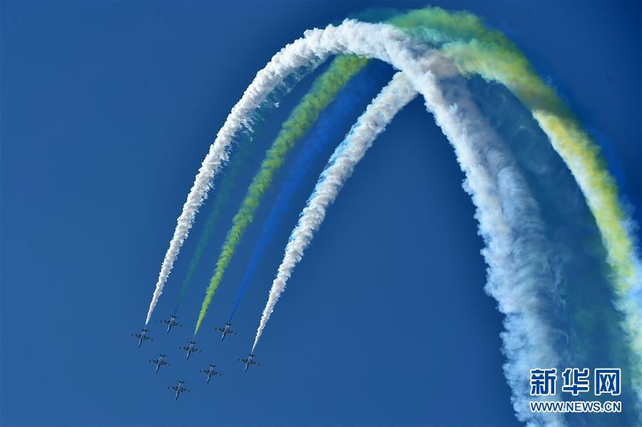 11月6日,中國(guó)空軍八一飛行表演隊(duì)在航展現(xiàn)場(chǎng)進(jìn)行飛行表演。當(dāng)日,第十二屆中國(guó)國(guó)際航空航天博覽會(huì)在珠海開(kāi)幕。 新華社記者梁旭攝