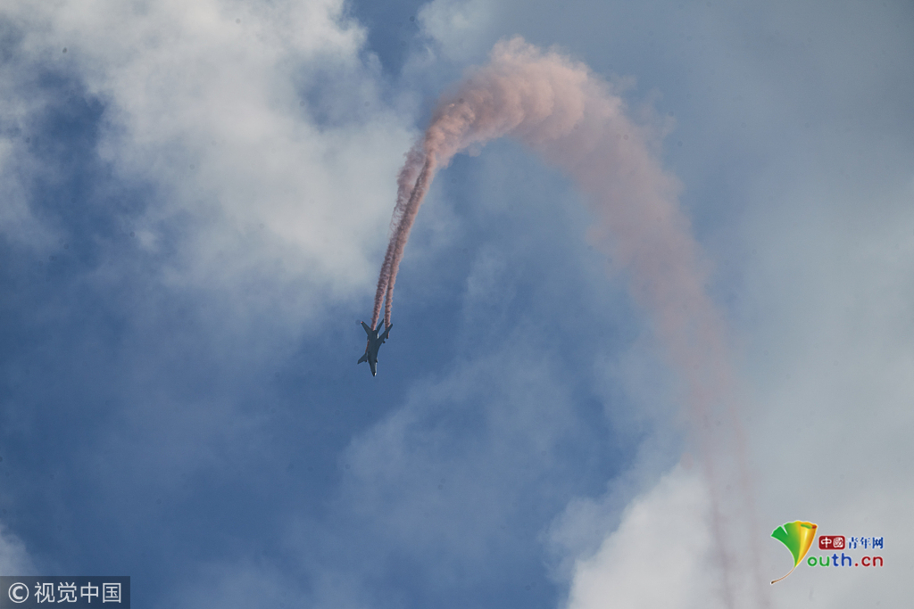 2018年11月7日,廣東珠海,第十二屆珠海航展第二天,航空工業(yè)FTC-2000G戰(zhàn)斗機進行飛行表演。梁瑩菲/視覺中國