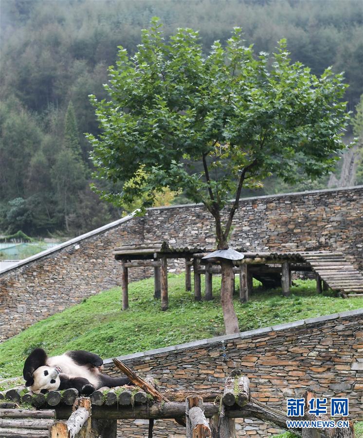 這是在中國(guó)大熊貓保護(hù)研究中心臥龍神樹坪基地拍攝的大熊貓(2017年9月23日攝)。 新華社記者 薛玉斌 攝