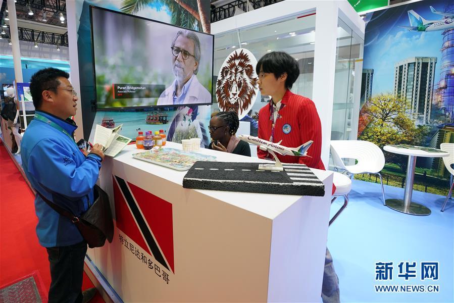 11月8日,在加勒比地區(qū)國家展區(qū)特立尼達(dá)和多巴哥展臺,一名參觀者(左)與工作人員交談。 中國國際進(jìn)口博覽會11月5日在上海開幕。國家貿(mào)易投資綜合展(國家展)是中國國際進(jìn)口博覽會的重要內(nèi)容,共有82個國家、3個國際組織設(shè)立71個展臺。 新華社記者 程麗 攝