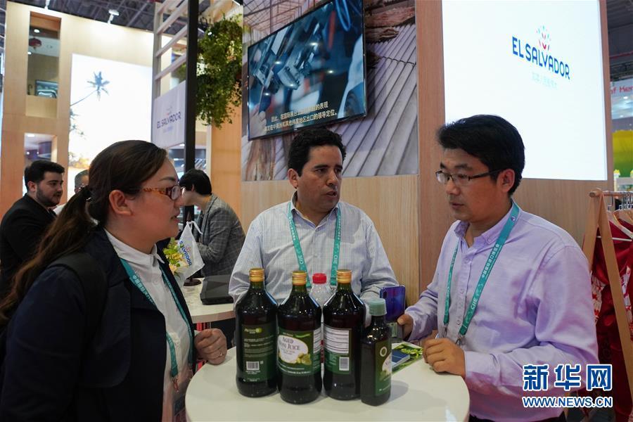 11月7日,在薩爾瓦多展區(qū),一名參觀者(左)聽取工作人員推介當(dāng)?shù)厣a(chǎn)的諾麗果汁。 中國國際進(jìn)口博覽會11月5日在上海開幕。國家貿(mào)易投資綜合展(國家展)是中國國際進(jìn)口博覽會的重要內(nèi)容,共有82個國家、3個國際組織設(shè)立71個展臺。 新華社記者 王天聰 攝