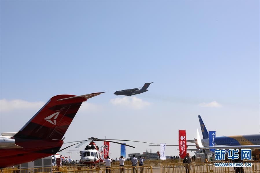11月6日,中國空軍運-20飛機在航展現(xiàn)場進行飛行展示。當日,第十二屆中國國際航空航天博覽會在珠海開幕。 新華社記者劉芳攝