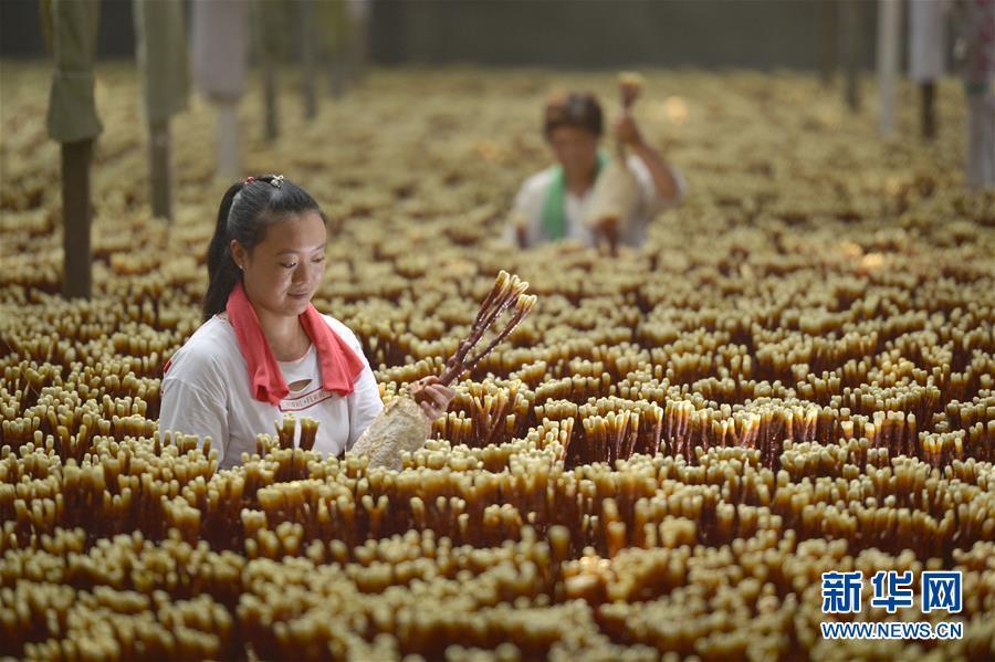8月22日,河北省沙河市蟬房鄉(xiāng)水磨頭村農(nóng)民在管理種植的靈芝。 近年來,河北省沙河市蟬房鄉(xiāng)水磨頭村采取“合作社+基地+農(nóng)戶”的經(jīng)營(yíng)模式,大力發(fā)展特色靈芝種植,開辟出農(nóng)民創(chuàng)收新路徑。目前,水磨頭村已種植各類靈芝8萬多株,產(chǎn)品銷往北京、天津、山東等地,帶動(dòng)100余名農(nóng)民人均年增收超5000元。 新華社記者 牟宇 攝