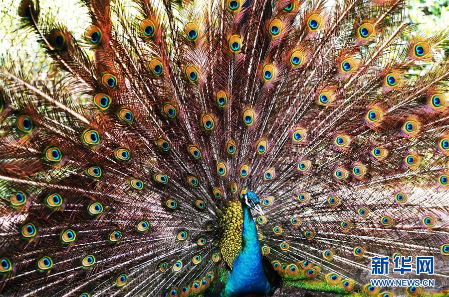 5月16日,在重慶市銅梁區(qū)永嘉鎮(zhèn)高龍村藍(lán)孔雀養(yǎng)殖場(chǎng)內(nèi),一只藍(lán)孔雀開屏。 新華社記者 王全超 攝 |