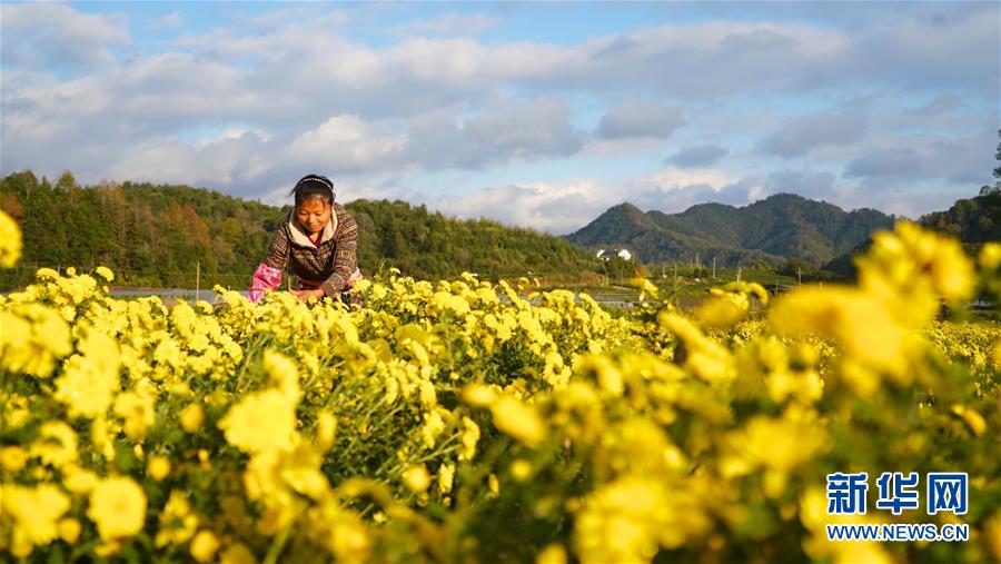 11月8日,婺源縣思口鎮(zhèn)農(nóng)戶在采摘皇菊。