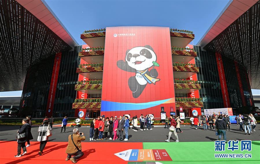 11月5日,在上海國家會(huì)展中心入口處,旗幟迎風(fēng)飄揚(yáng)。新華社記者 李賀 攝