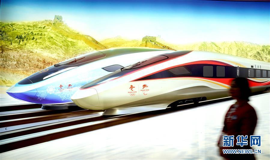 11月8日,一位志愿者從進(jìn)博會(huì)中國館一幅高鐵概念圖前走過。 新華社記者 陳建力 攝